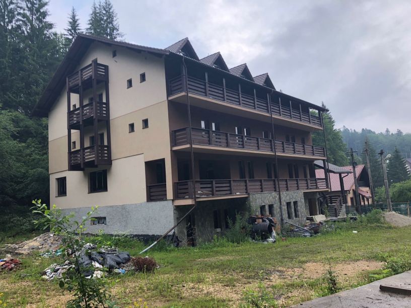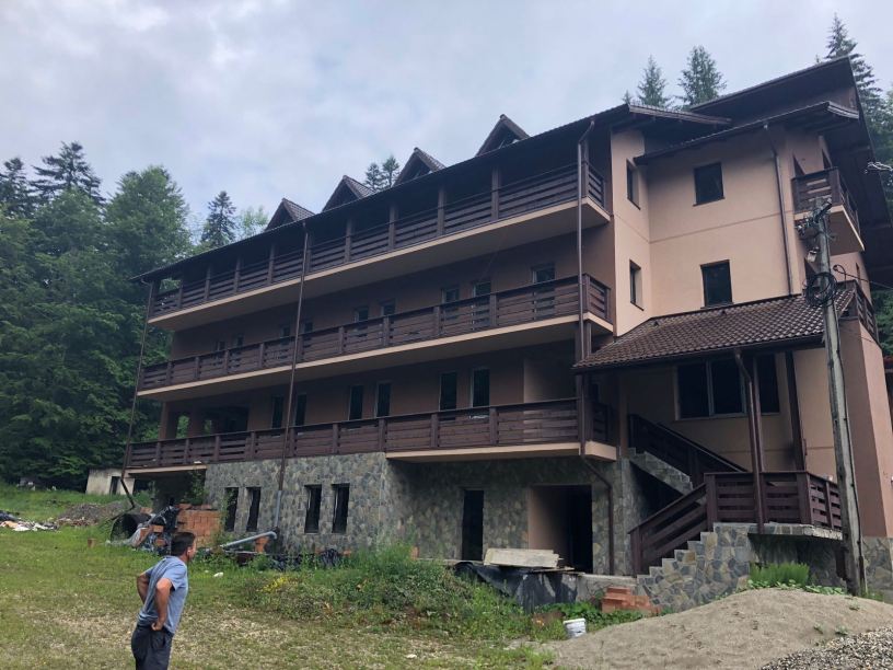 - Hotel D+P+2E+M – 33 Camere, cate 11 camere la etajele 1, 2 si mansarda. Parterul permite amenajarea a inca 11 camere, in prezent avand o compartimentare diferita, sala de evenimente si cabinete. Receptia, bucataria si restaurantul se afla la Demisolul inalt al cladirii. Constructia a fost ridicata in 2010 si este finalizata in proportie de 85% avand realizate instalatiile electrice si sanitare, centralele termice, boiler si tamplaria PVC cu geam termopan. Mai sunt necesare la interior finisajele in acord cu destinatia finala a cladirii.