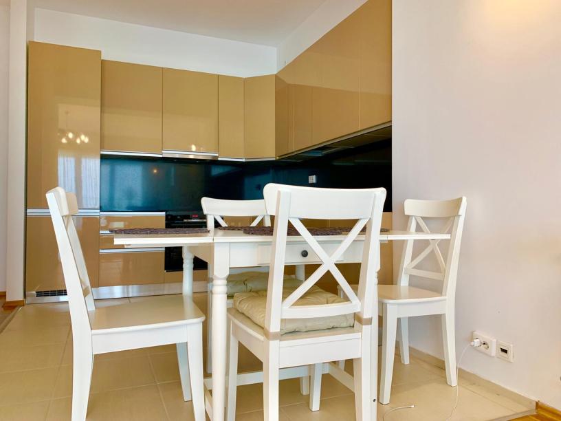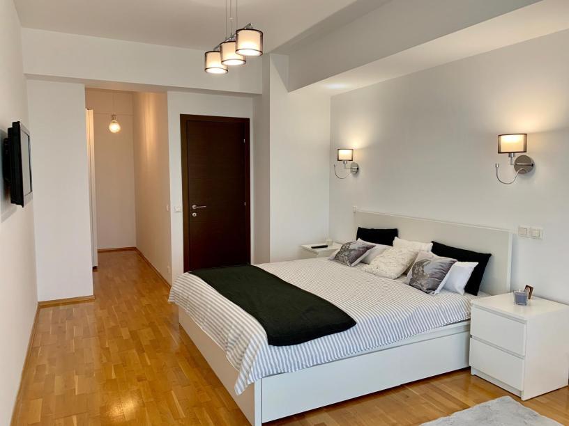 Apartamentul este situat la etajul al treilea intr-un bloc nou care face parte din Complexul Rezidential Vita Bella Pipera. Are un loc de parcare la subteran inclus in pretul inchirierii.