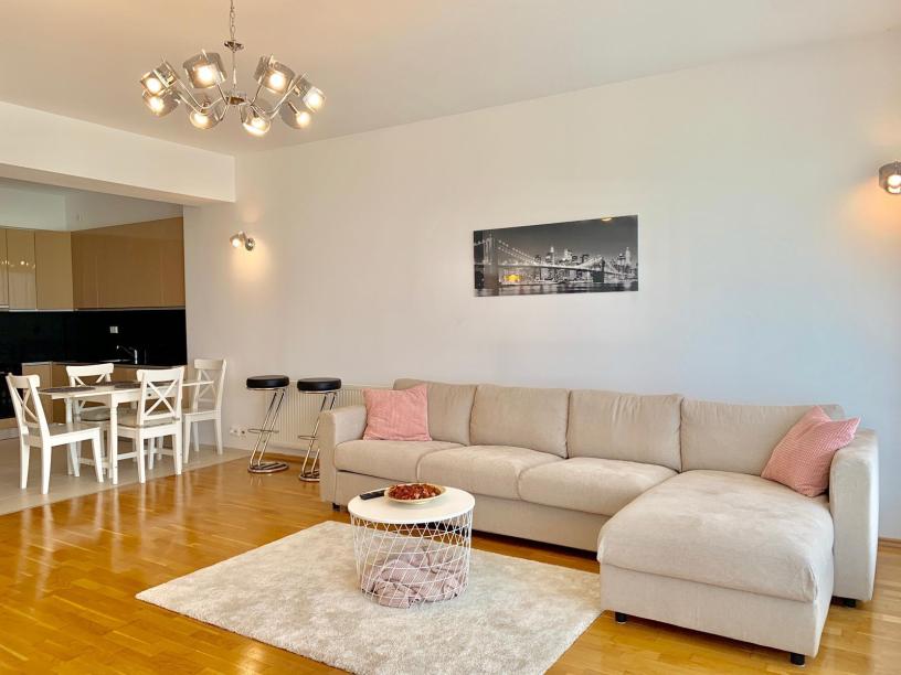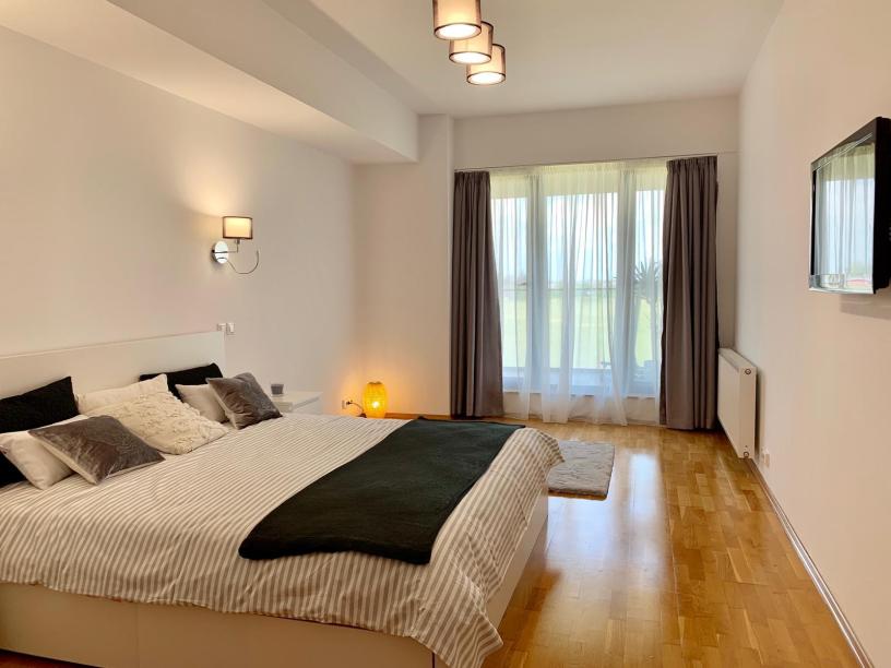 Daca iti doresti mai mult pentru aceasi bani, te invit sa vizionezi un apartament spectaculos in zona Pipera, langa Scoala Americana. 90 mp utili pentru 2 camere se traduce in spatii mari, deschise, luminoase si primitoare. Apartamentul este nou, complet mobilat si utilat, aranjat cu mult bun gust. Interiorul, care nu are nimic in comun cu apartamentele clasice de bloc, iti lasa iluzia ca deja ai emigrat. Terasa are 15 mp si o priveliste verde si linistitoare, fara cladiri in apropiere. Un apartament fara cusur, potrivit pentru clienti cu pretentii, care apreciaza calitatea vietii.